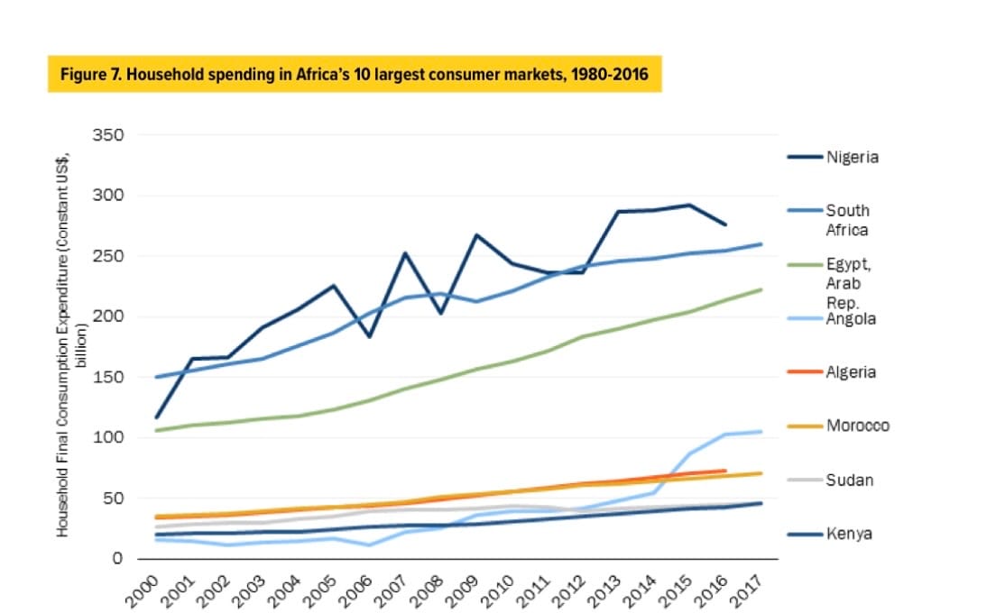 - Most North and East African countries remain below 50, highlighting disparities in income and spending power.