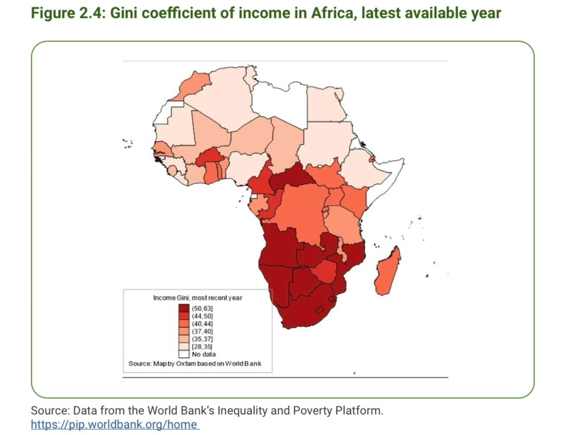 Lagos, Nigeria, Friday, October 10, 2025 - Income inequality in Africa remains one of the continent’s most measured yet complex development indicators. Data compiled from national statistical offices, the World Bank, and the African Development Bank (AfDB) show that inequality across African economies is deeply linked to structural production patterns, fiscal policy design, and the reach of social protection systems. The Gini coefficient, which tracks income distribution on a scale from 0 to 100, remains the continent’s most widely used inequality measure. It serves as a benchmark for monitoring progress under Agenda 2063 and the Sustainable Development Goals (SDG 10: Reduced Inequalities).