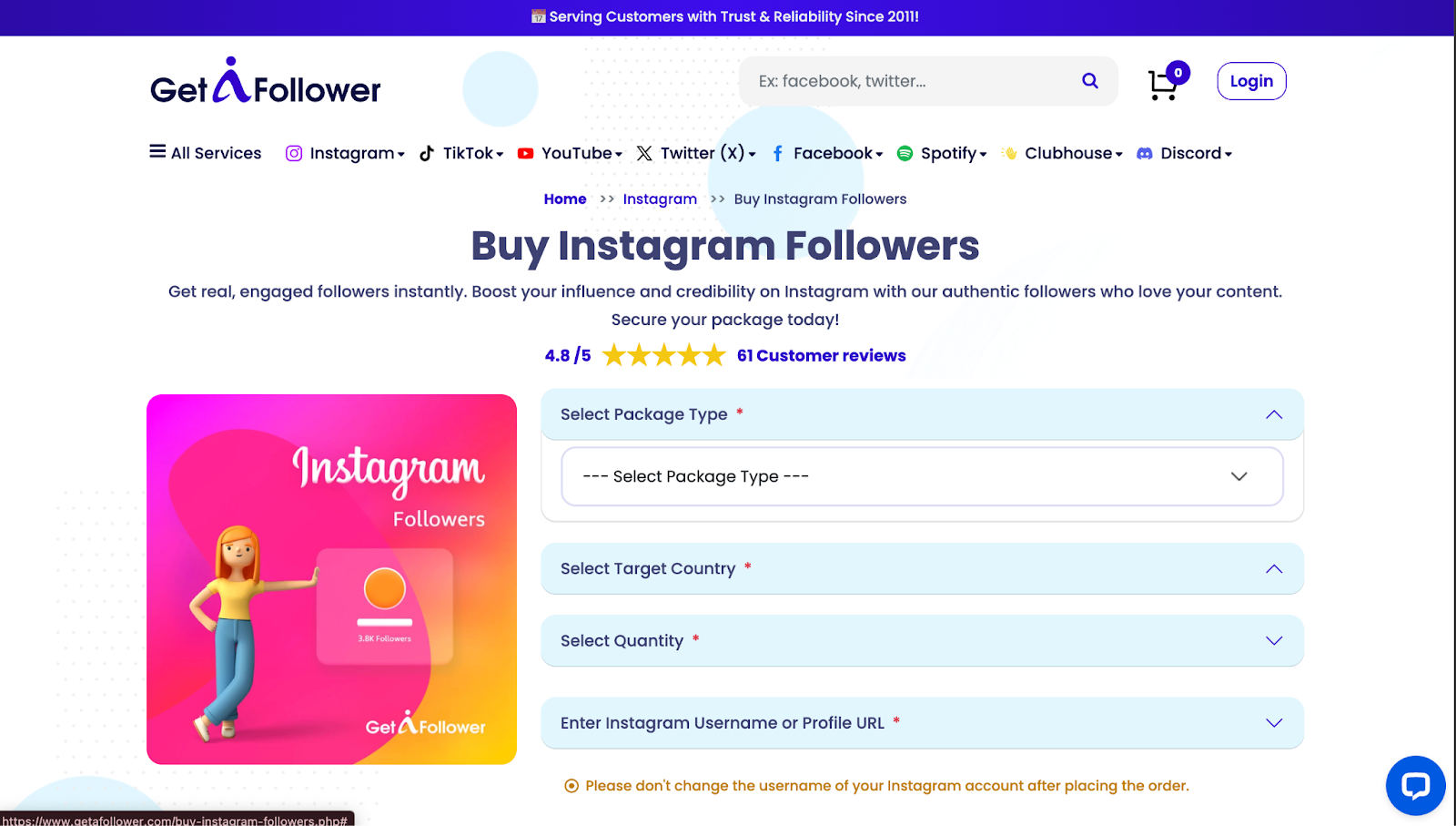 GetAFollower works really well if you want to buy affordable Instagram followers without spending crazy amounts. They've been doing this since 2011, so that's over a decade of solid experience helping creators and businesses grow their presence. The pricing stays straightforward with no hidden fees that pop up at checkout, which matters when you're trying to stick to a budget. What makes them stand out is those monthly plans where followers get replenished automatically; you won't need to keep reordering manually.