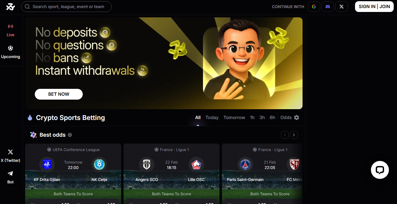 Sportbet.one is one of the earliest decentralized sports betting platforms, originally built on the EOS blockchain. It lets anyone bet anonymously and globally with no KYC and near-instant payouts directly to their wallet.